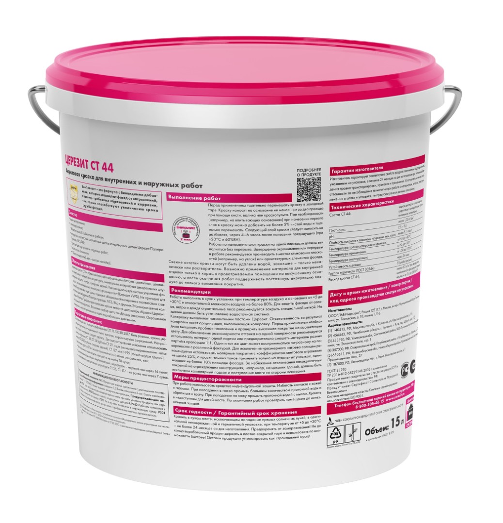 Описание товара: "Краска акриловая Ceresit СТ 44 водно-дисперсионная база (15 л)"